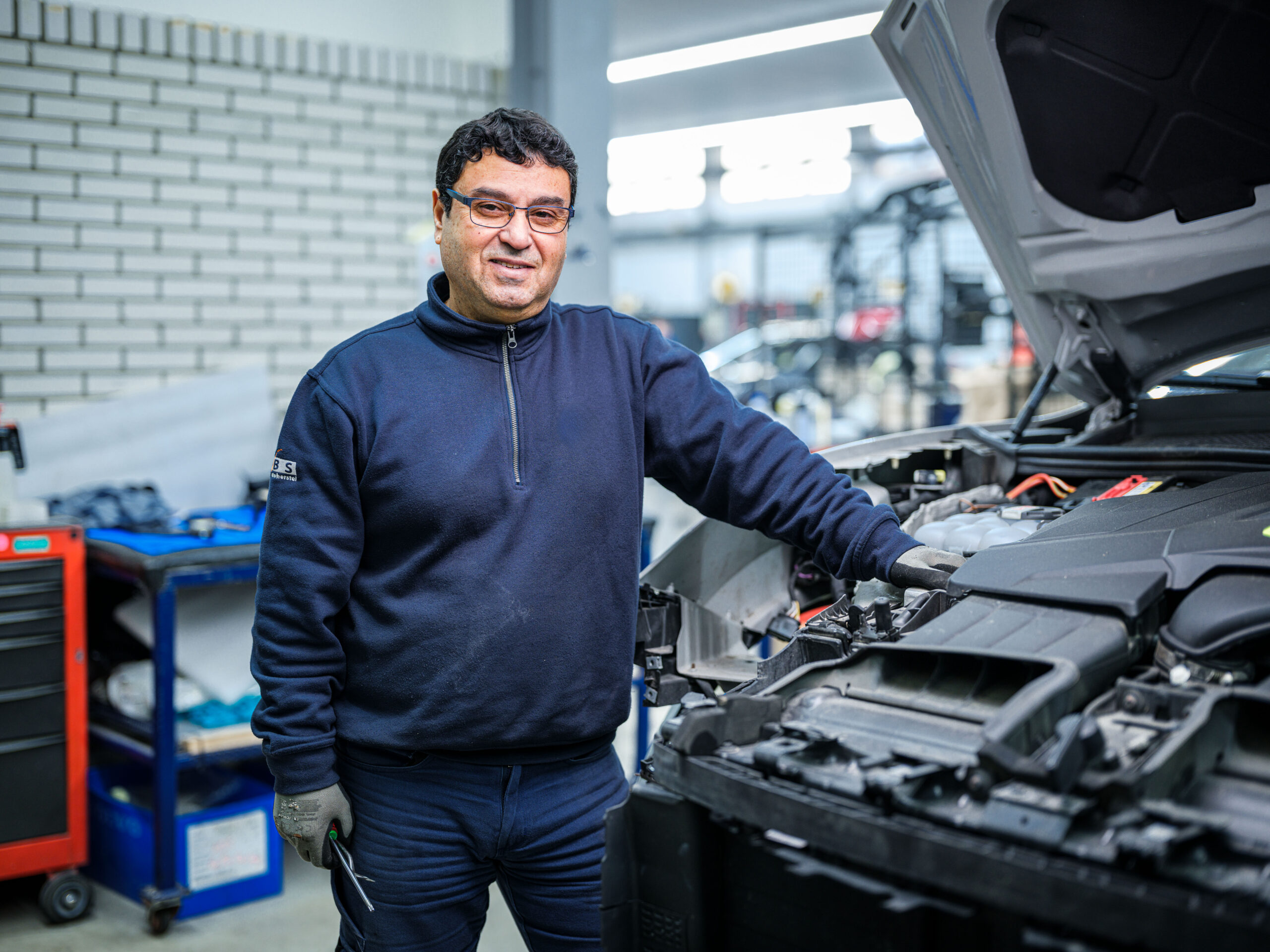 Abdellah Zaama is plaatwerker op de vestiging in Den Haag. Hij werkt er al 25 jaar, maar niet altijd als plaatwerker. Hij begon als autowasser en omdat hij eerst de Nederlandse taal goed moest beheersen, duurde het anderhalf jaar voordat hij als demonteerder en plaatwerker aan de slag kon.